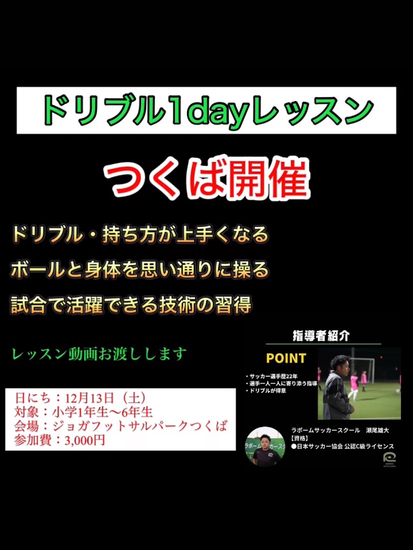 【つくば開催】12/13(土)1dayレッスン〜ラポ式ドリブルトレーニング〜